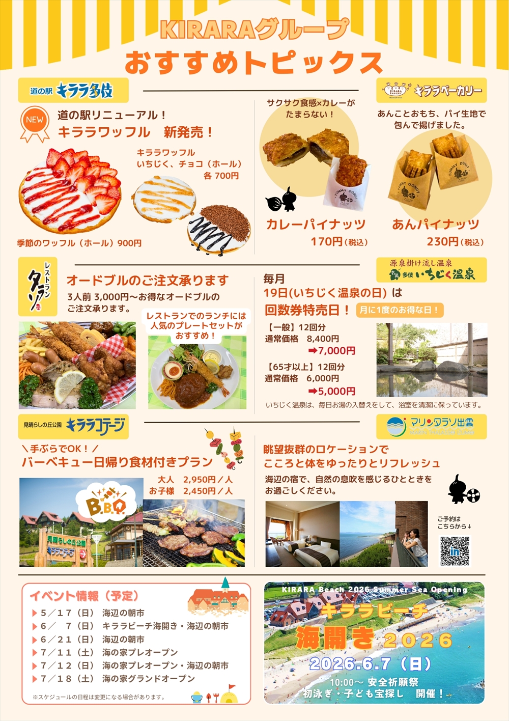 道の駅キララ多伎で楽しいイベントと美味しいグルメをお楽しみください。